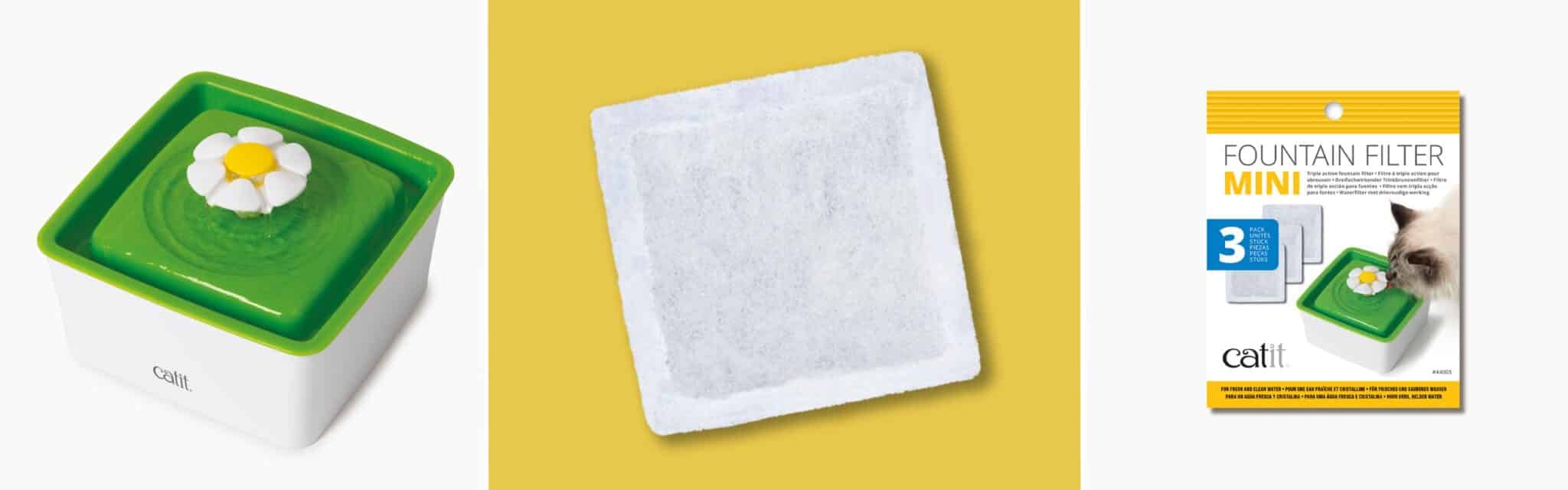 - Set of 3 dual action filters compatible with the Catit Mini Flower Cat Fountain