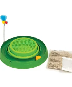 The Catit Play Circuit Ball Toy with Cat Grass features fresh, healthy grass right in the toys centre. Cat grass helps to stimulate a cat’s digestion and prevents the build-up of hairballs. The toy includes grass seed and soil along with simple instructions on how to grow the grass. Replacement grass seed available. The toy can still be used without the grass if desired.