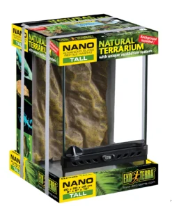 The all-glass Exo Terra® Natural Terrarium has dual front opening doors and a removable stainless steel screen top to allow easy access for cleaning, maintenance and feeding. The dual front opening doors come with a reliable locking-system to prevent unwanted or accidental opening to make sure your terrarium inhabitants remain safe and secure in their habitat.