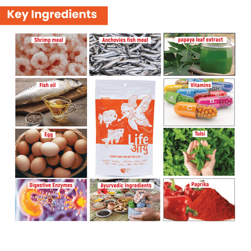 Life AAYU Goldfish Food combines modern nutrition with time-tested Indian Ayurveda. With Tulsi for immunity, Papaya Leaf for digestion, and Red Paprika for stunning color, this soft-sinking pellet is perfect for Fancy and Community Goldfish. Made in India, tested by aquarists, and trusted by thousands.